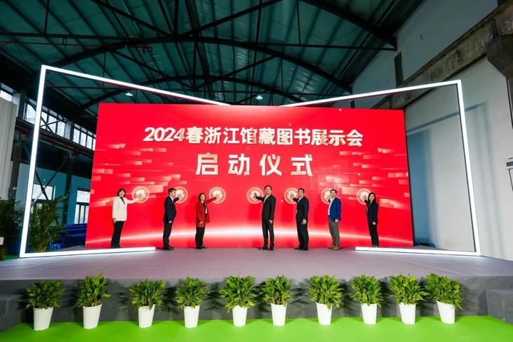 随後(hòu),七位嘉賓正式按下啓動鍵,在現場嘉賓的共同見證下,共同啓動“2024春浙江館藏圖書展示會”。